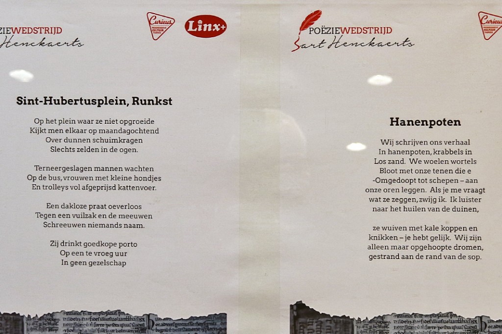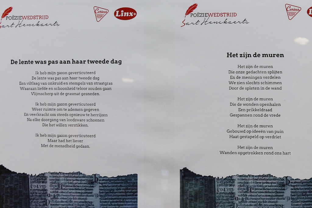 Ter nagedachtenis aan Bart Henckaerts organiseerden curieus Limburg en Linx+ dit voorjaar een poeziëwedstrijd. Bart Henckaerts was jarenlang een vakbondstopman die drie jaar geleden veel te jong aan een slepende ziekte overleed. Omdat hij niet om status of geld gaf, maar wel om rechtvaardigheid, wilden beide organisaties deze prachtige persoon in herinnering brengen met deze poeziëwedstrijd. De wedstrijd had als thema ‘Rechtvaardigheid’. Gedichten die handelen over recht en onrecht in onze samenleving of in het dagelijkse leven kwamen in aanmerking. Op de uitreikingsavond die plaats vond op 5 augustus in het OC Rooierheide werden de genomineerde gedichten voorgedragen. Het gedicht “ Het zijn de muren” van Hanne Scheffers uit Ardooie behaalde de eerste plaats gevolgd door ” De lente was pas aan haar tweede dag” van Hervé Deleu uit Menen en op de derde plaats “ Hanenpoten” van Elfi Vandenabeele uit Waardamme.
