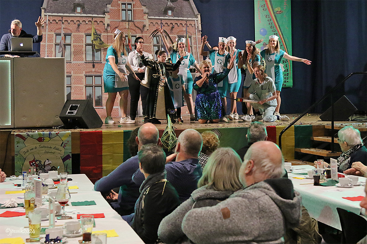 Zaterdagnamiddag organiseerde de Orde van de Teutonische Ridders hun jaarlijkse seniorenzitting. Bij deze zitting kon het aanwezige publiek genieten van een wervelende vedette parade met sketches en optredens van eigen huis met nummers van bekende artiesten zoals: K3, Erik & Sanne, Dennie Christian, Mieke, Zwarte Lola, André Hazes, Heintje, De Championettes en Will Tura. Na de pauze, waar er werd genoten van stuk taart en koffie, werd het 8ste Seniorenprinsenpaar onder luide knal en met gepaste introductie door de spreker van dienst Jean-Paul Klinkers ten tonele gevoerd waarna Prins Jan en Prinses Marie-José voorzien werden van de nodige attributen. Het verder verloop van de zitting werd ingevuld met zanger Sammy Baker, zangeres Monique en accordeoniste Kristel. Met de verkiezing van het seniorenprinsenpaar is de volledige bezetting van prinsen en prinsessen bekend voor het carnavalsseizoen 2023-2024 en zijn de Teutonische Ridders klaar voor de stoet van zondag 3/03/2024 om 14.11 u. Later op de avond had nog het prinsenbal plaats in het OCR in aanwezigheid van talrijke bevriende groepen.